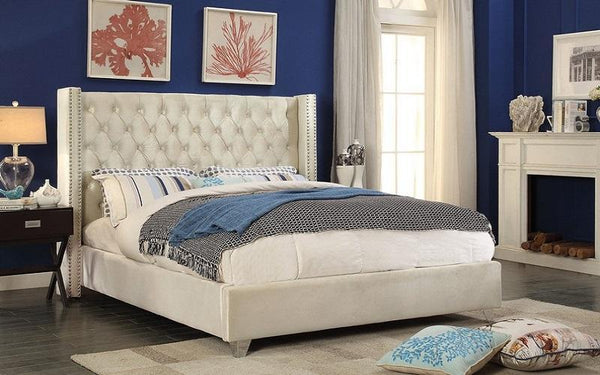 Platform Bed with Velvet Fabric - Creme - NATBED139
